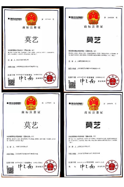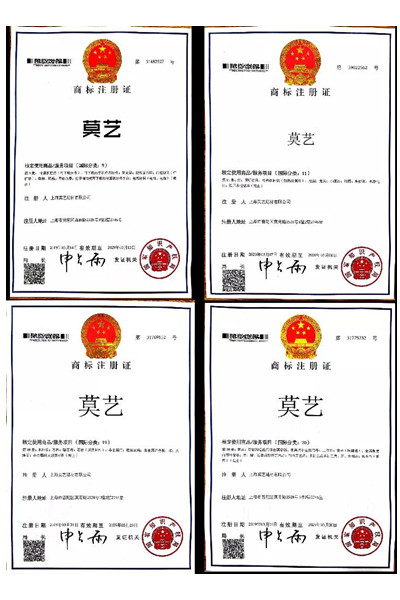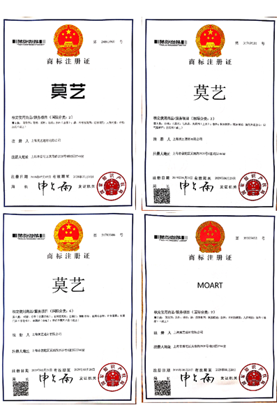 近年來莫藝集團發展持續增長,經營業務日益擴大,客戶口碑不斷提高。公司為了實現品牌戰略規劃及適應市場日新月異的變化,進一步提升品牌效應,在已有類別的商標注冊證基礎上,申請其他類別的商標注冊并成功通過申報,至此莫藝集團完成了“莫藝(或MOART)”商標的全類別注冊,共45個大類。