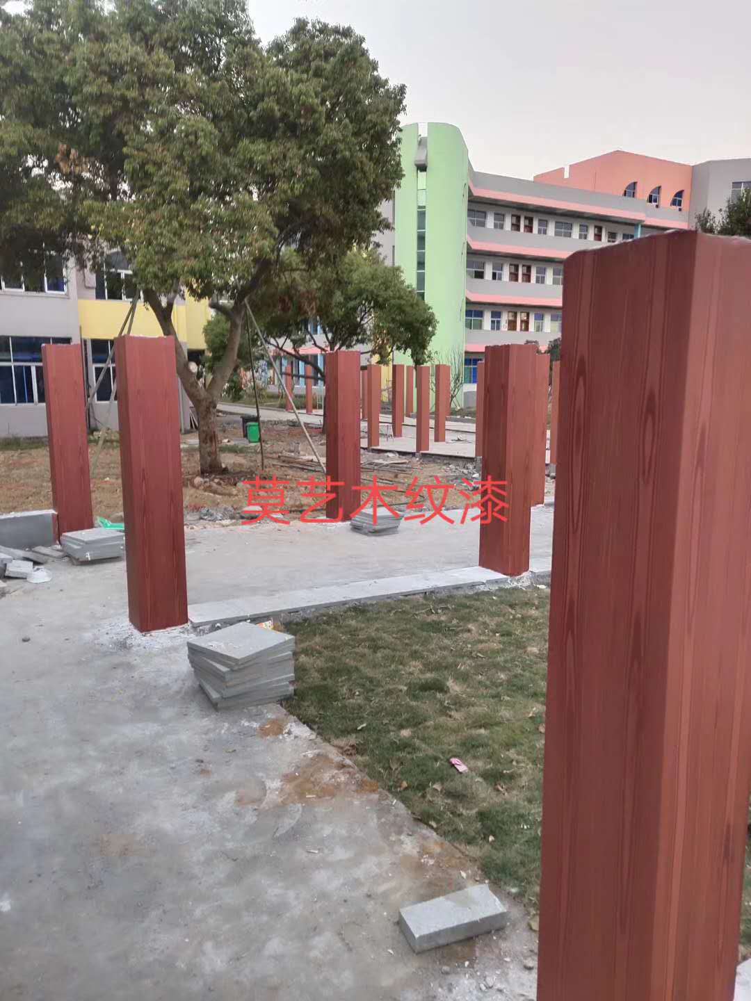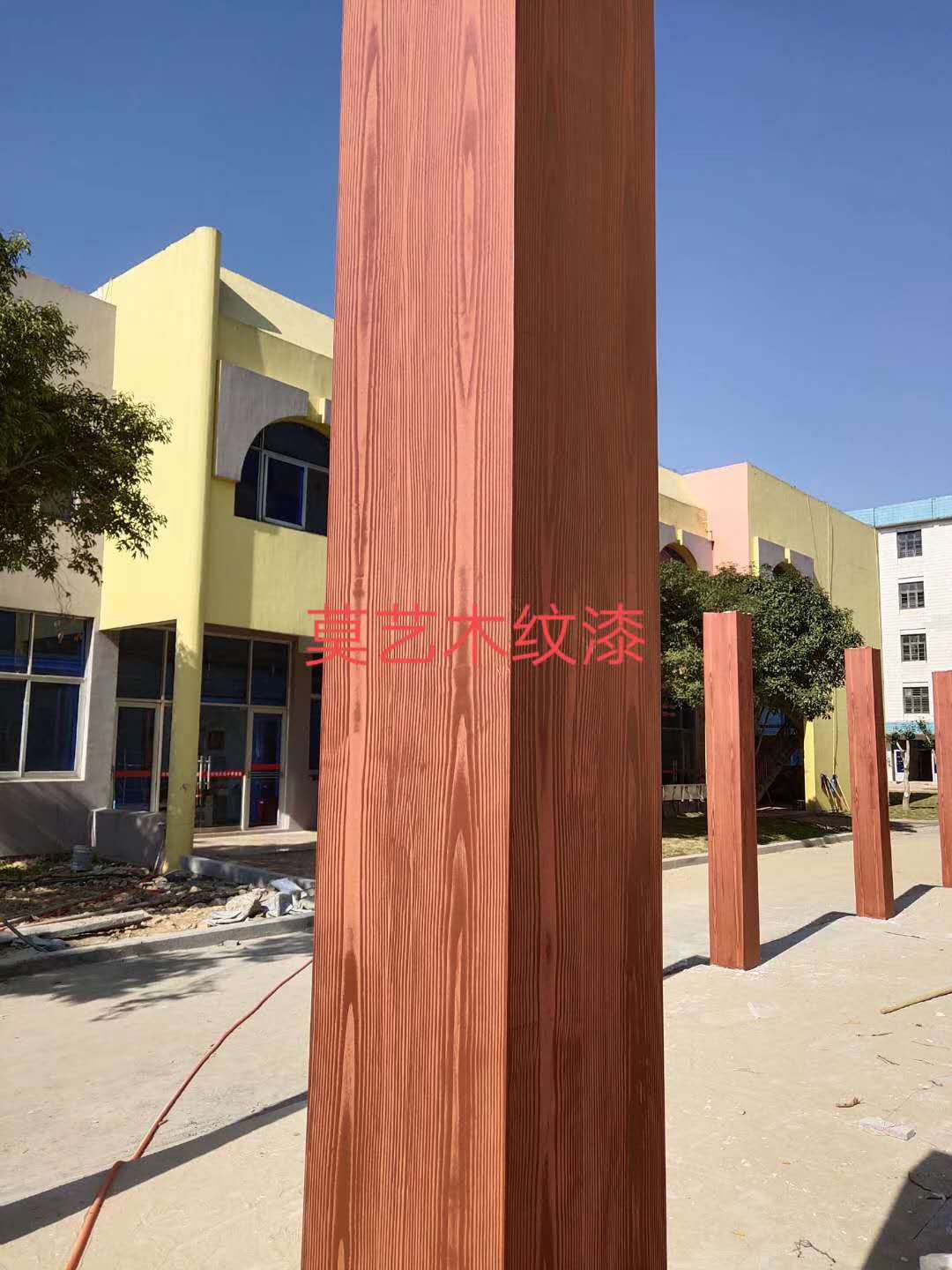 通常,我們知道木紋漆可以在鋼管、鐵管、水泥墻面、石膏板上做仿木紋效果,實際上在混凝土上也是可以做的。施工前批刮膩子2遍,用砂紙打磨表面至光滑平整,最后刷一遍抗堿底漆。