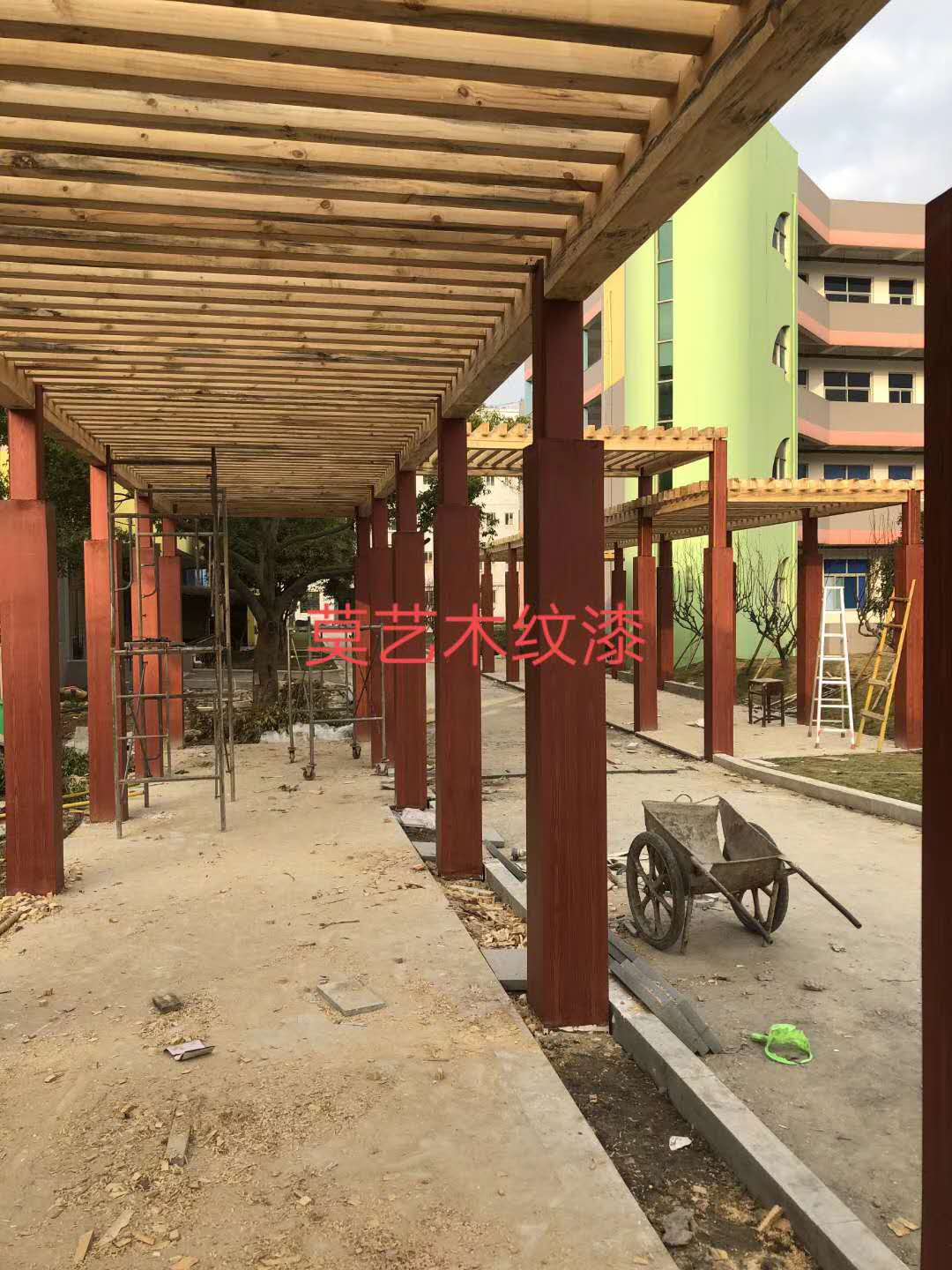 下面是我們上海莫藝在浙江省溫州市平陽縣騰蛟鎮騰蛟一中做的混凝土仿木紋效果圖,完工后整體效果美觀,學生在這樣的環境下學習也會有愜意感。