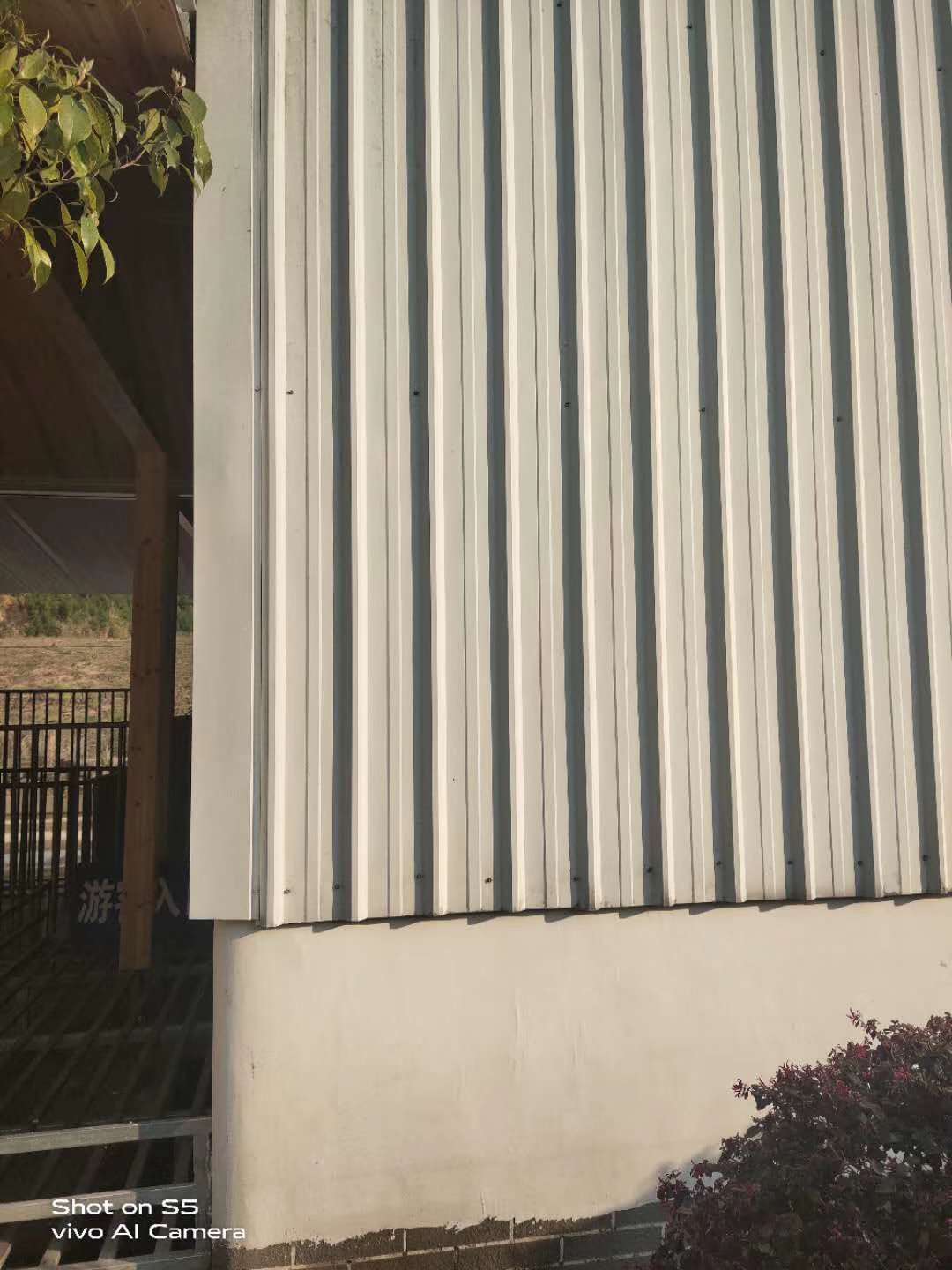 下面4圖是上海莫藝建材在江西省吉安市海木源景區(qū)彩鋼瓦上木紋漆施工的圖片。