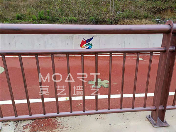 下面這張圖是在學校塑膠跑道的鋼制護欄上做仿木紋