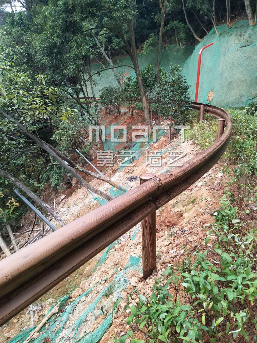 除了各種造型的護欄上都可以做木紋漆之外,不同材質,水泥、鍍鋅方管、不銹鋼等這些材質上通通都可以做木紋漆。通過不通的基層處理都可以達到逼真的仿木效果。一般景區的護欄高度有三種,低欄0.2-0.3米,中欄0.8-0.9米,高欄1.1-1.3米,可以因場景按需選擇合理的高度。木紋漆搭配不同的顏色也可以做出不同的質感效果,客戶在選擇顏色之前可以看以往施工的案例多比較。