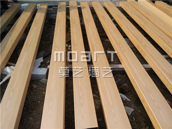 現代建筑多用金屬,很少用木材,但是一些建筑類型,比如廊架、公園項目、園林景區,用木材搭建會更貼近自然,給人更好的感官。可惜的是木材造價比較高,使用年限也不是很長,室外環境容易被腐蝕、風化,木紋漆工藝完善了這個難題,在金屬表面,水泥面上做木紋漆,木紋效果與自然原木基本沒有區別,金屬的使用壽命長,木紋漆的保質時間可以達到8-10年。
